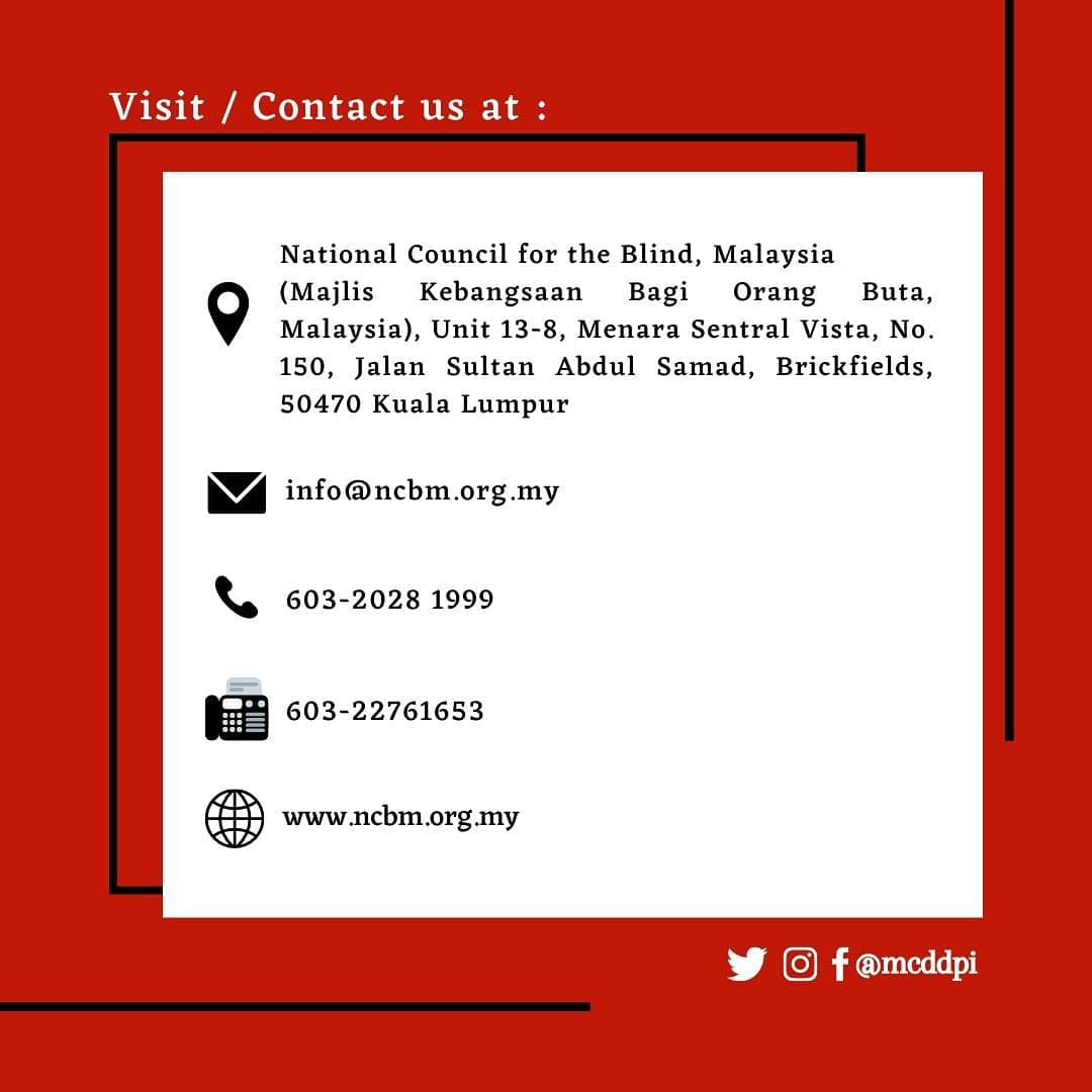National Council For The Blind Malaysia Majlis Kebangsaan Bagi Orang Buta Malaysia Unit 13-8 13th Floor Menara Sentral Vista No. Alternative ways of donating to us online via this link. National Council For The Blind Malaysia.